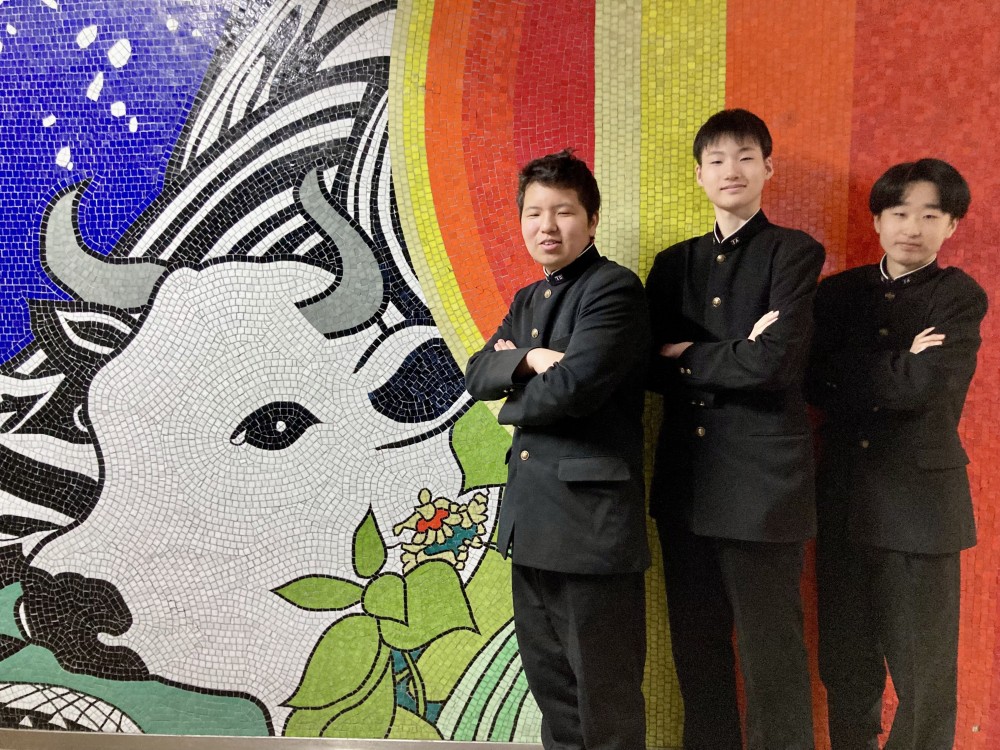 帯広農業高校農業科学科1年の新井健介さん、森川響さん、