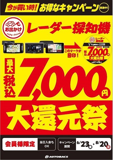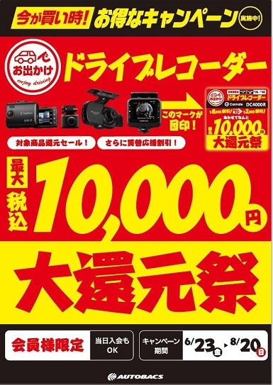 【ドラレコ大還元祭】対象商品買替購入で最大10,000円還元。(~8/20まで)
