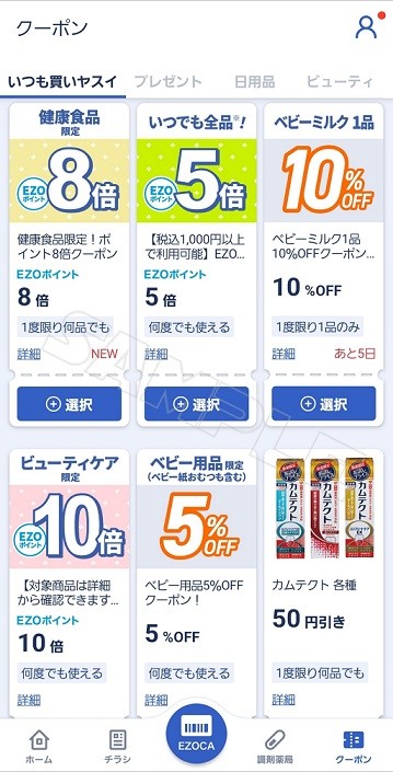 「入浴剤とボディソープエゾポイント8倍」クーポンも配信されています!