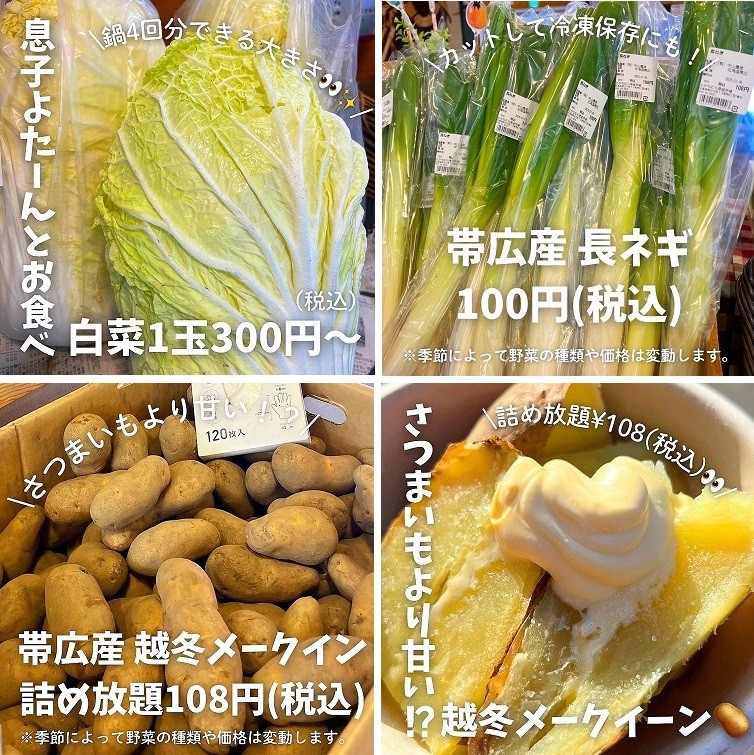もはやこの値段どうなっているの?との驚きの声が止まらない産直市場のお野菜ですが、帯広近郊の農家さんが獲れたて新鮮なお野菜を運んできてくださるため鮮度が良く美味しいのにこの安心価格ということで、こちらもぜひお買い求めください!