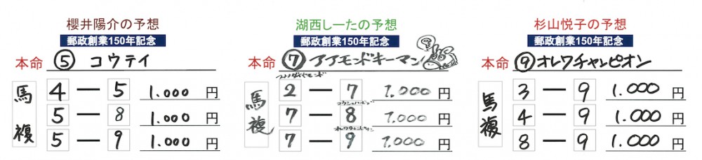 10月10日(日)のメインレース「郵政創業150年記念」の出走馬の紹介、レース展望。そして参考になるか分からない番組パーソナリテイの馬券予想をお聞きください。