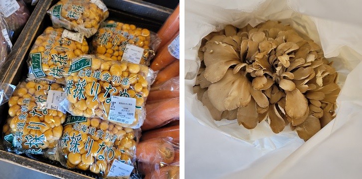 大きなまいたけと、株採れなめこ、活きくらげ、十勝マッシュが並んでいました。