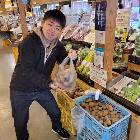 かなり大きいものから小ぶりなものまで、大小様々なメークインがかごに。