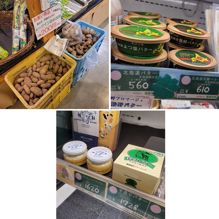 産直市場では定番のよつ葉商品、発酵バター、十勝野バター