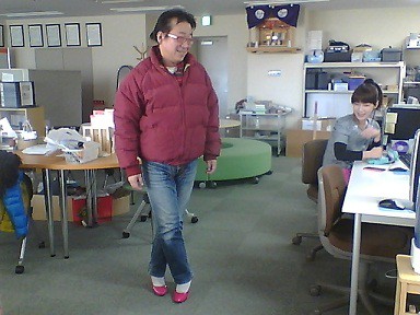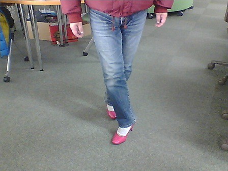 梶山さんは、江畠さんから借りた、ピンヒールブーツ借りてました!