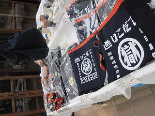 手提げ袋、前掛け、携帯ケースなどの製品は、監獄のロゴが入っており、