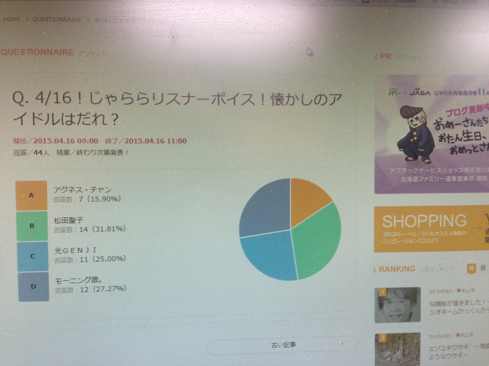 アンケートフォームにある4択をクリックしてください♪締切りは11時までですよ♪